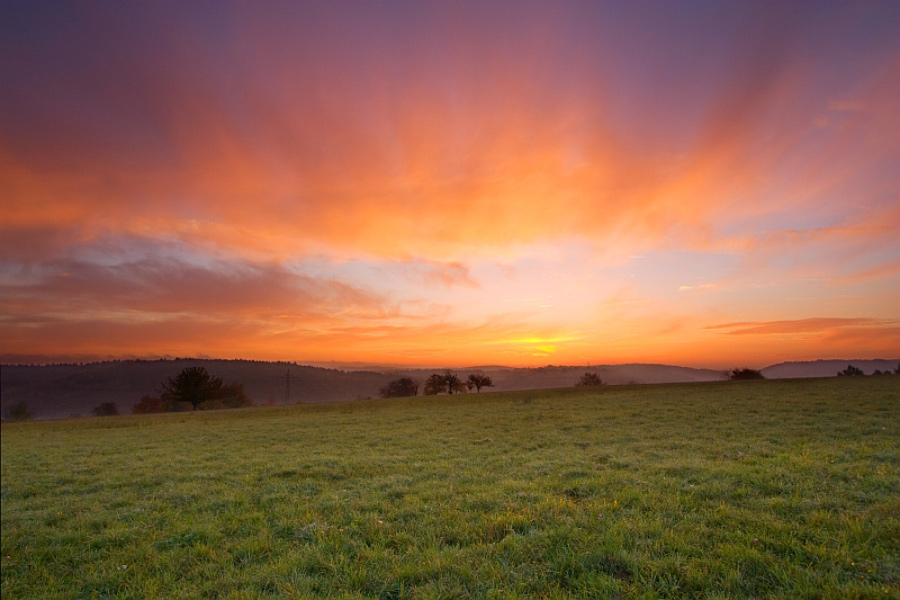 This is one of the best-known weather sayings. In most cases, the saying is also true. At least when "red sky in the morning and evening" refers to the intense lighting of clouds by the setting or risen sun. In our latitudes, the weather is determined by westerly winds. A beautiful red sky at night can only occur if the sky in the west is clear and there are still many clouds in the east, e.g., from a departing precipitation area. During the night, the clouds move further east, often followed by a clear day. In the morning, it is exactly the opposite. The sun is in the east, where the sky still needs to be clear, but clouds are already approaching from the west. During the day, the clouds then cover the entire sky.