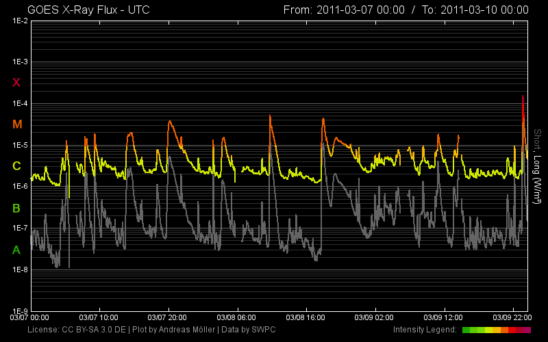 If an X-Class Flare has occurred, the further development should definitely be monitored. Often, shortly thereafter, an aurora alert or a watch is issued. But even M or even C-class flares have already caused auroras. - Flare duration