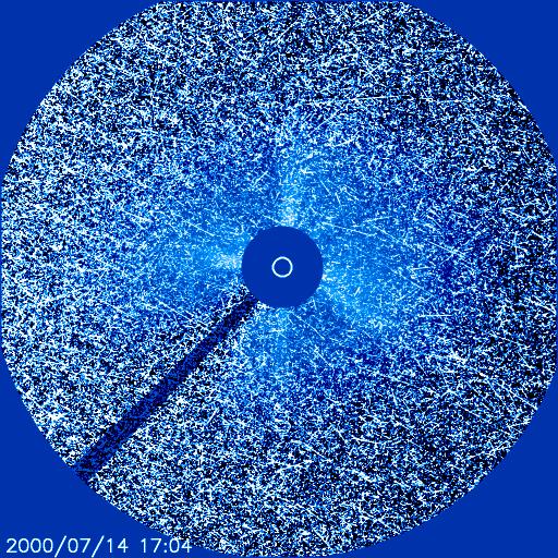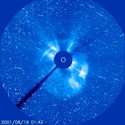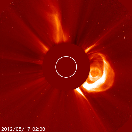 The more central a flare occurs, the more likely it is that the expelled material flies toward Earth. If a CME is seen completely encircling the solar disk on the LASCO C2/C3 instrument of the SOHO satellite, it is called a so-called Full-Halo CME.