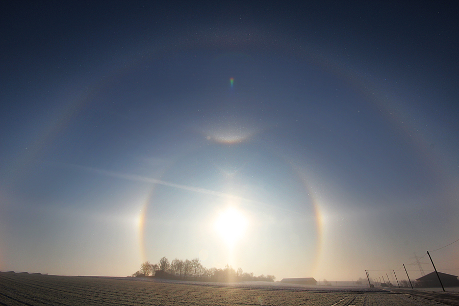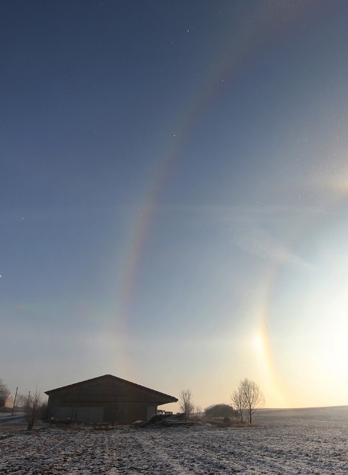 South of the village of Achsheim, the ice crystals sparkled in the air and various halos appeared, which we could observe and photograph from different locations for half an hour.