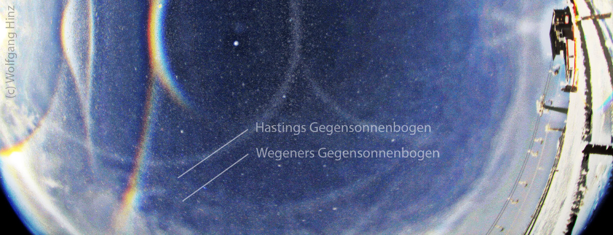 Wegener's anthelic arc. While the apex of Wegener's anthelic arc is on the